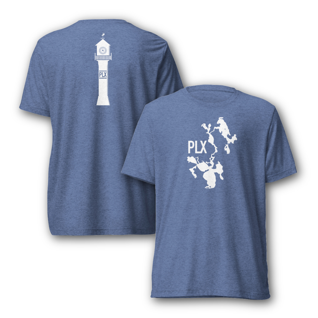DESIGN: This stylish t-shirt features a map of the PLX on the front, while the back showcases the iconic Portage Lakes Clock Tower.